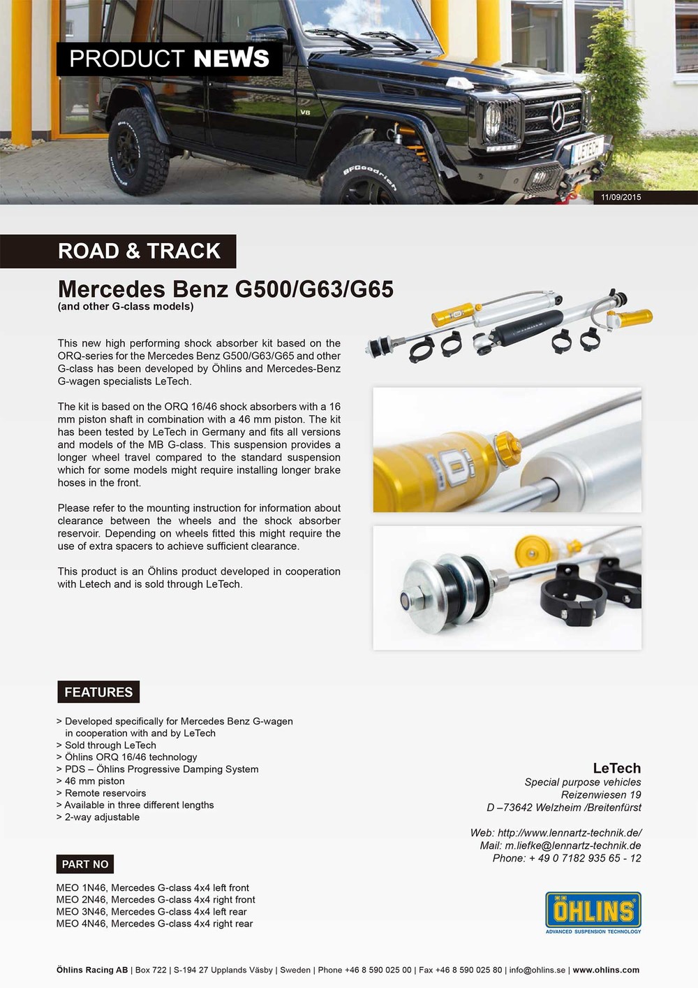 G63AMG, G65AMG 용 ohlins 올린즈 ROAD & TRACK 서스펜션 키트 입고