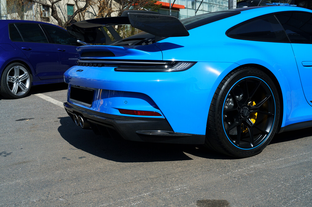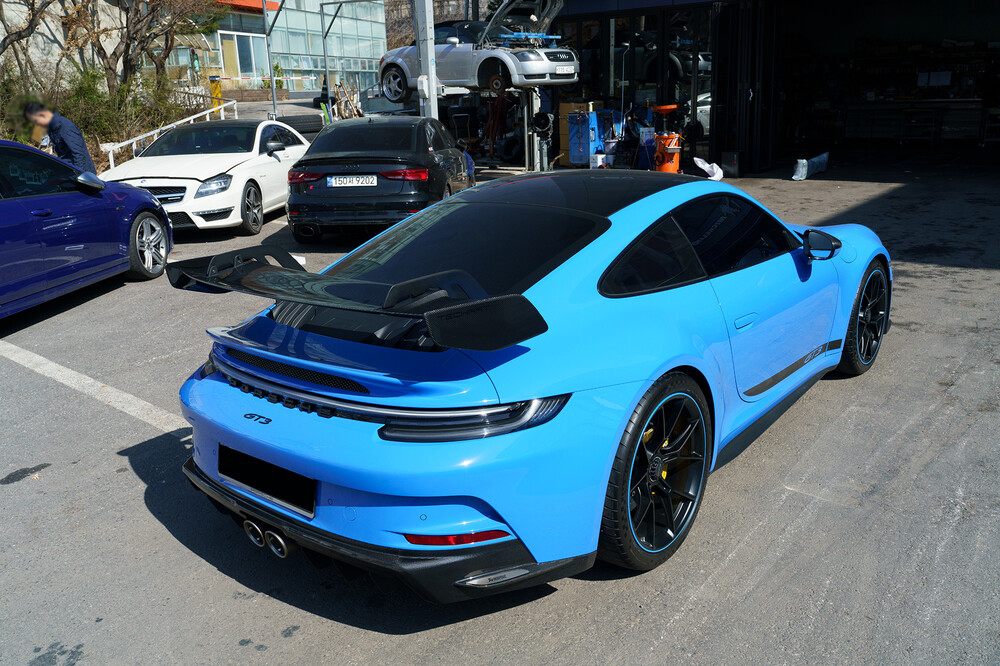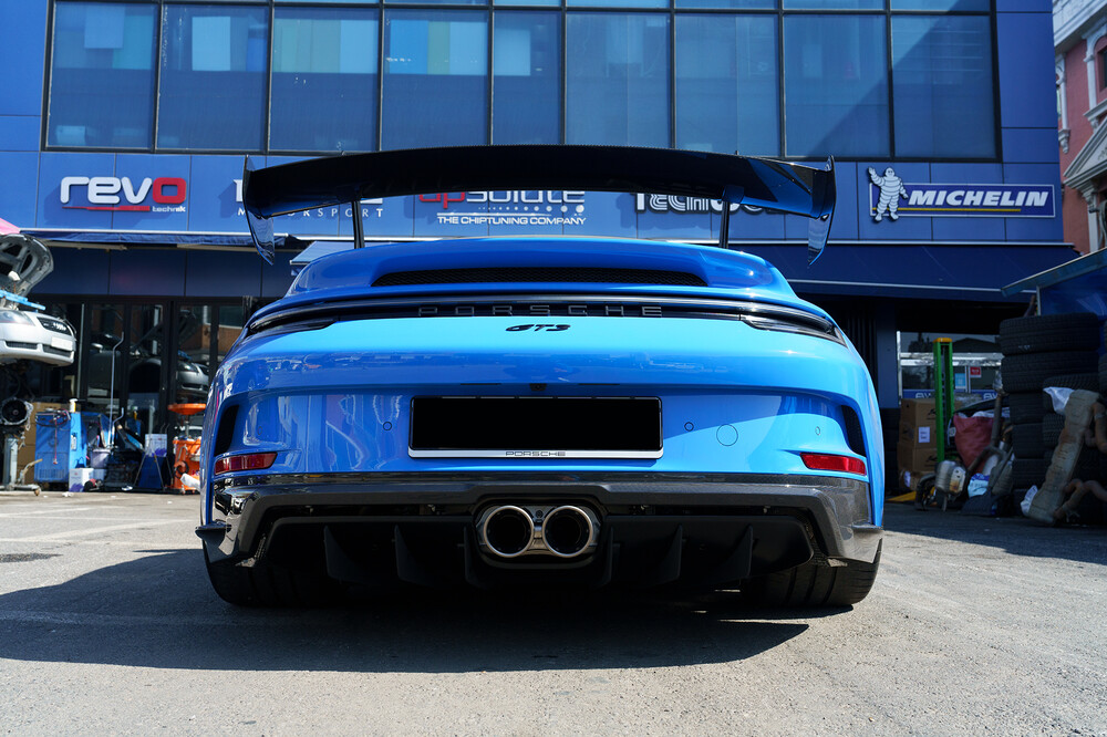 포르쉐 992 GT3 아크라포빅 티타늄 머플러 , 아크라포빅 리어 디퓨져 , 테크아트 카본 리어 윙 (스포일러) techart
