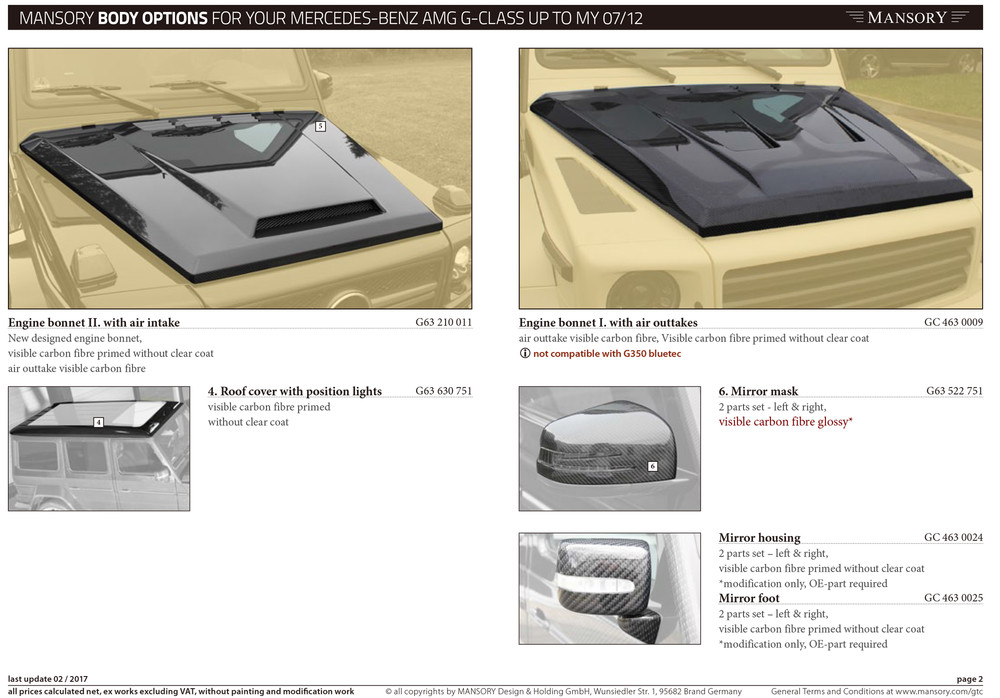 벤츠 지바겐 G63AMG G65AMG G500 4X4 만소리 드라이 카본 보닛 mansory